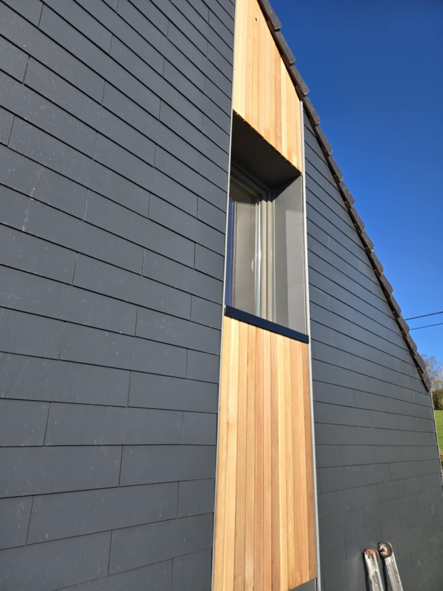 Afin d’offrir une isolation performante et un style contemporain, nous avons également réalisé le bardage de la façade :